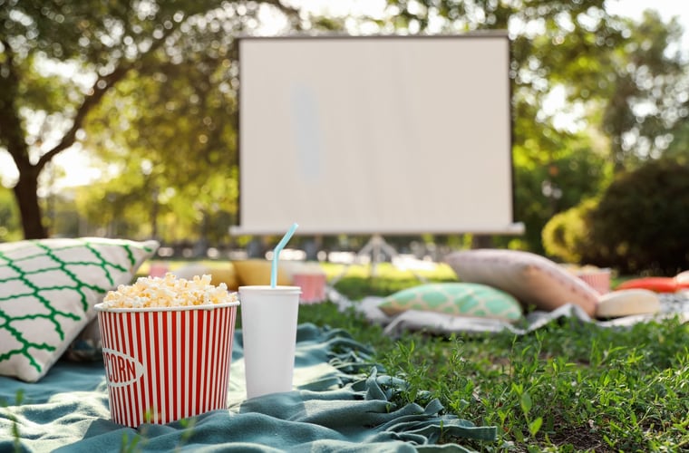 Neither the use of a portable projector nor the purchase of goods specifically for gardens are necessary. You can always improvise. We haven't identified any that are weatherproof or otherwise protected from the elements for good reason. When it's raining, nobody wants to see a movie outside. So have a back-up plan ready in case of bad weather.