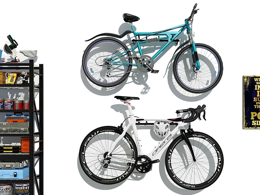 There are things to consider when storing bikes. One of which is the temperature of the room. It needs to be consistent with the outside temperature to avoid moisture building. Another thing to avoid is not to have the bike's tires rest flat on a bare concrete floor for a long time. The bike's tires will dry-rot and age prematurely because of the moisture that the concrete floor will draw out from the tires' rubber. The solution for that if standing upright on the garage floor is the only way you can store your bike is to put wood, carpet, rug, or rubber mat.Generally speaking, bikes stacked horizontally on the floor is not a really good way to store them. That is especially concerning if you have more than one bike in your arsenal, as the needed floor space is more significant than expected. They will most likely lean on another bike as most of the hoops only support the front tire, which can scratch your bikes in this position. Pulling out a unit among the bikes stacked together when you need to use one would be more challenging as you will also be lifting the others.A good suggestion or alternative to these storage woes would be to mount them to the wall or ceiling. It is much cheaper to buy the proper bike rack than to spend on bike repairs. But a word of caution for the renters, better inform or ask permission from the landlord if you can drill halls on the walls or ceilings.
