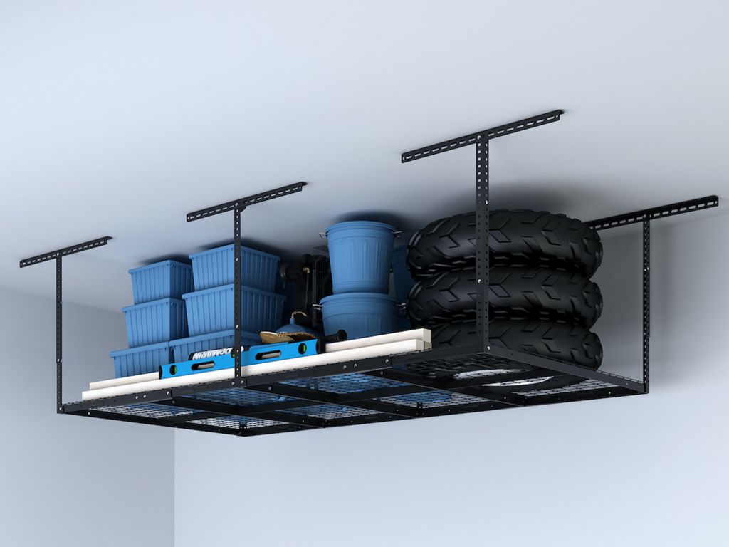 You have to decide what kind of storage organization will fit perfectly for your garage. Keep in mind the height of the room and how wide the walls can be used to install these storage. Also note that when installing either overhead garage storage or wall shelf, make sure that the doors or windows are out of the way, and of course, your vehicles if you intend to use the garage as a parking space as well.The Fleximounts GR Series Classic Overhead Garage Storage features a safe and high loading capacity because of its high-quality construction. This ceiling-type installed garage storage rack has a sturdy and stable design. Its grid design and frame are welded together, and used heavy-cold rolled steel as material. Not only is it durable, but the integrated grid design allows easier assembly of the storage rack.The GR Series has a weight capacity of 400 to 600 lbs, while its height adjustment can go from 22 inches to 40 inches ceiling drop-down. This feature enables the garage owner to customize the height to fit perfectly for the garage space and the comfortable height one wants it to be. The rack is also suitable for securing either ceiling studs or solid concrete ceilings. Furthermore, the screws that are provided in the package have undergone strict tests, and are proven to be thicker than those from the other brands that also supply overhead garage racks.Not only do the overhead garage rack optimize ceilings, it also provides an advantage in avoiding flood damage by storing your stuff off the garage floor, which protects your items from getting soaked. Moreover, it makes your garage look neat, and avoids rodents and insects from making a home in your garage.
