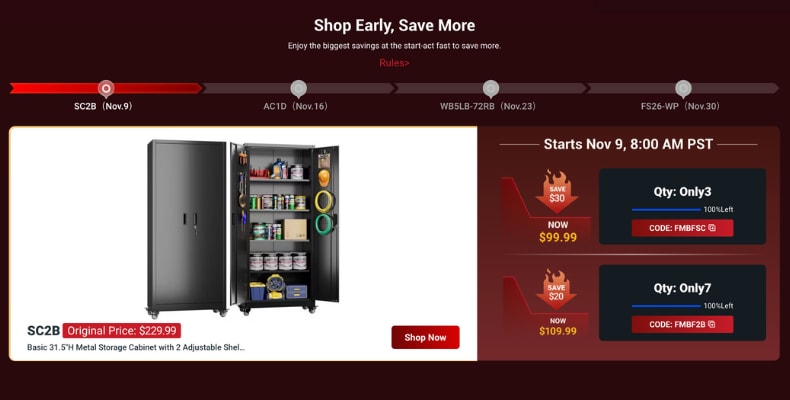 Some things in life go fast: the last slice of pizza, concert tickets, and this Black Friday–Fleximounts’ SC2B Basic 31.5"H Metal Storage Cabinet. Starting November 9 at exactly 8:00 AM Pacific Time, this cabinet is about to enter the shopping spotlight with prices so low, they sound like typos. Picture this: a sturdy, sleek cabinet that normally costs $229.99, marked down to just $99.99 or $109.99, depending on the code you use. And yet, only a handful of people will get their hands on it. Think of it as an exclusive backstage pass, but for your garage.