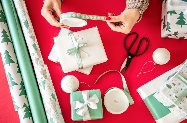 Grab a piece of paper and a pen because you are likely to make a list of these. The following items should be present at an ideal gift-wrapping station: small, medium, and large bags, wrapping paper, scissors, tape, tissue paper, gift cards, ribbon, and pens. You might also decorate your station with glitter, washi tape, thread, embellishments, present boxes, and other things if you want to go the additional mile. It helps if you have neutral hues like silver, brown, and gold that you may utilize for any situation. Keep gift wrappers for each milestone or occasion in a person's life, such as weddings and birthdays as well as for the Christmas season, if you wish to stay more on theme.