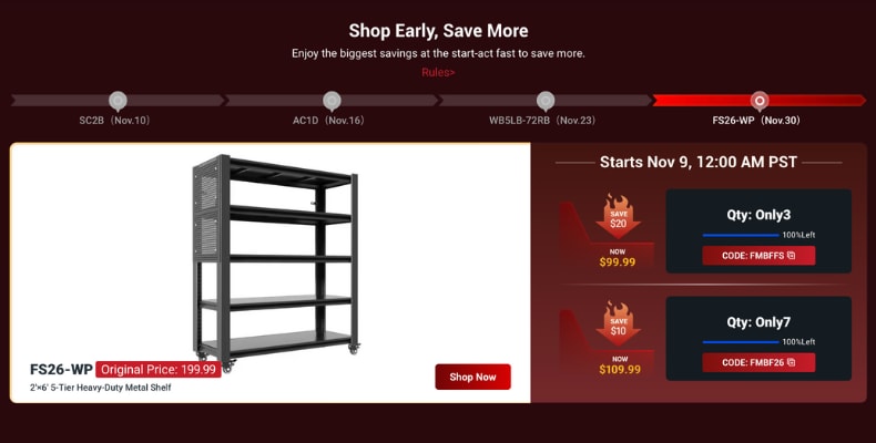 Garage shelves do not usually inspire urgency, but this one does. The FS26-WP brings strength, stability, mobility, customization, and simplicity into one structure. Add a Black Friday discount that vanishes quickly, and suddenly hesitation becomes expensive.