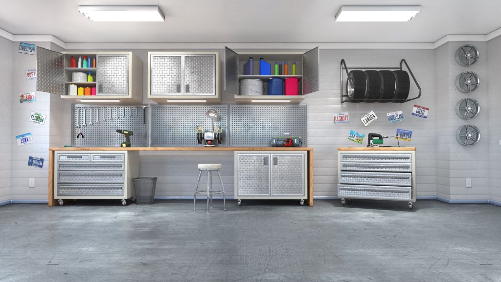 Since more people work at home now, the garage has become an ideal workspace. One of the focal points (aside from the car, of course) is a tool area. This is where you could see a pegboard where the tools would vary depending on the homeowner’s aesthetic, lifestyle needs, and purpose for the workspace. A woodworker may need the space for hand tools and added in magnetic bars, brackets, and bins. Some could use it as a gift wrapping station and put in paper roll holders and bins where tapes, bows, scissors, and wrappers could be stored. The possibilities are literally endless and you could work with a team of interior designers for your workspace vision to come to life.