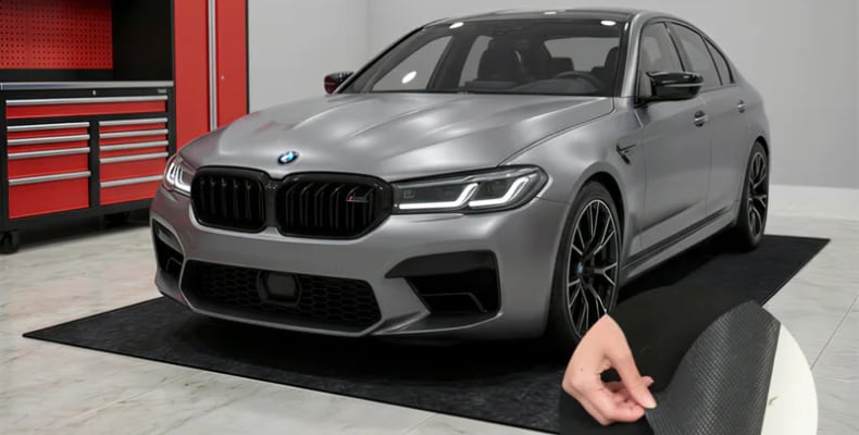 This is where solutions like the Fleximounts GFM02 Garage Floor Mat Waterproof Slip-Resistant Backing quietly earn their place. Made from 100 percent polyester non-woven fabric, it absorbs oil and water instead of letting them spread and stain. Beneath that soft top layer sits a heavy-duty waterproof rubber barrier that keeps liquids from reaching the concrete at all. The slip-resistant backing stays put without tools, glue, or drama. You roll it out, adjust it, and you are done.