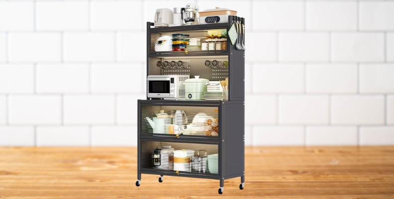 It’s more than a kitchen storage cabinet. It’s a multifunctional chameleon that adapts to your life. One day it’s storing your air fryer, the next it’s showcasing your cookbooks. Need a makeshift wine rack for your Friday night unwind ritual? It’s got you. Want a place to store your kids’ afternoon snacks or your favorite tea blends? Say less. From microwave stand to bookshelf, this cabinet understands that no one lives a one-dimensional life, and it’s built to keep up.