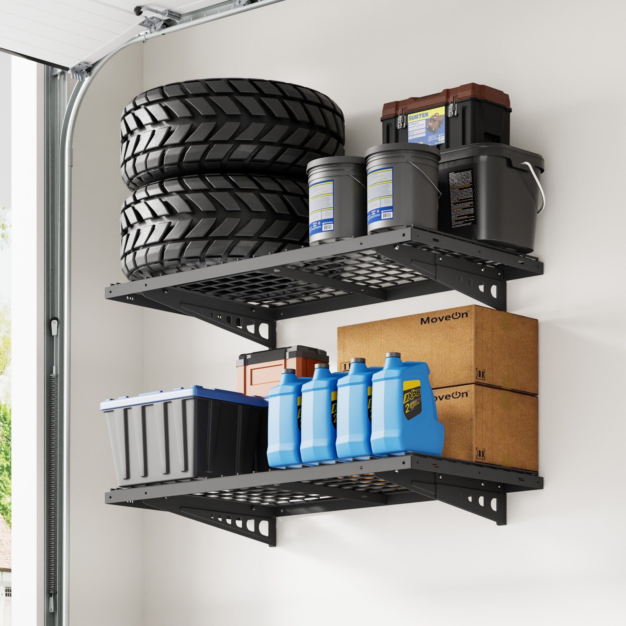 BR24B Pro Series 2-Pack 2' x 4' Wall Shelving,440lbs Total Weight Capacity, Black