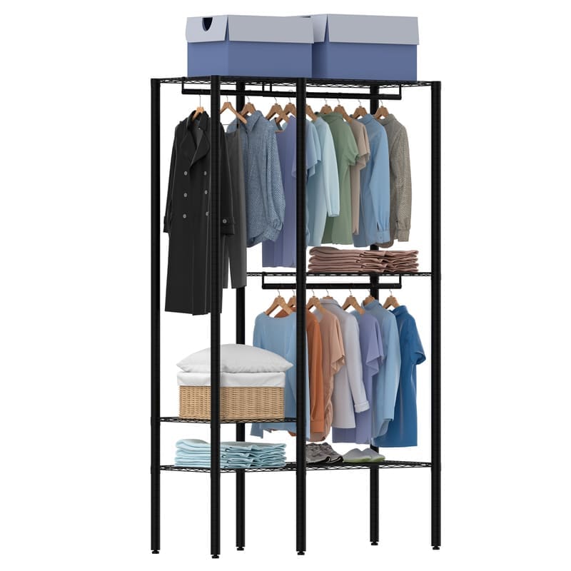1.With dimensions of 45.5”Lx16.5”Wx77”H and a weight capacity of 660 lbs, this clothing rack can accommodate nearly 100 pieces of summer clothing, 10 handbags, and 10 pairs of shoes. Ideal for use in bedrooms, laundry rooms, clothing stores, walk-in closets, and more, providing ample storage space for your wardrobe essentials.