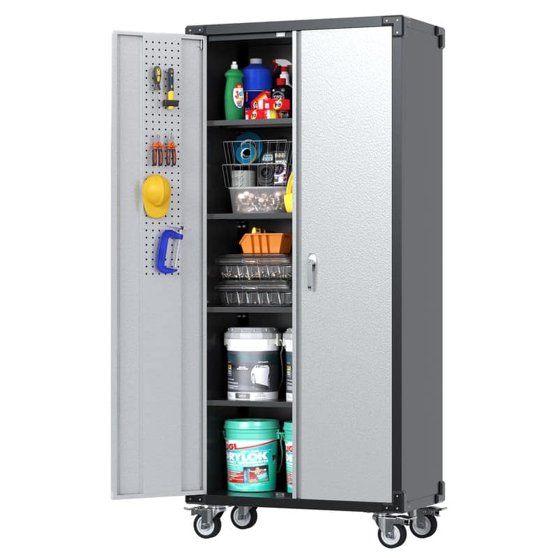 2.The steel cabinet has 4 adjustable shelves, which can provide sufficient space for your household goods, supplies, tools, etc. Built-in lock with 2 keys to ensure the safety of all documents and items.