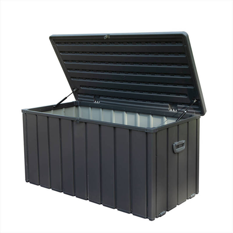 2.Outdoor storage container has portable side handles and mobility rollers for moving. Also, it has labor-saving pistons for extra support and strength.