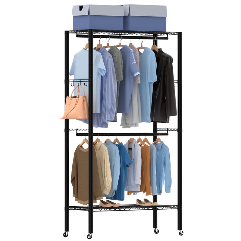 1.With dimensions of 45 "L x 17.7" W x 80.3 "H and a weight capacity of 330 lbs, this clothing rack can accommodate approximately 25 to 30 pieces of clothing, 10 to 15 dresses, and 6 to 8 pairs of shoes. Ideal for use in bedrooms, laundry rooms, clothing stores, walk-in closets, and more, providing ample storage space for your wardrobe essentials..